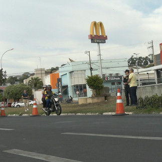 A primeira atividade foi uma panfletagem educativa realizada no semáforo da Avenida Padre Nelson com a Rua Rui Barbosa, na região central da cidade.